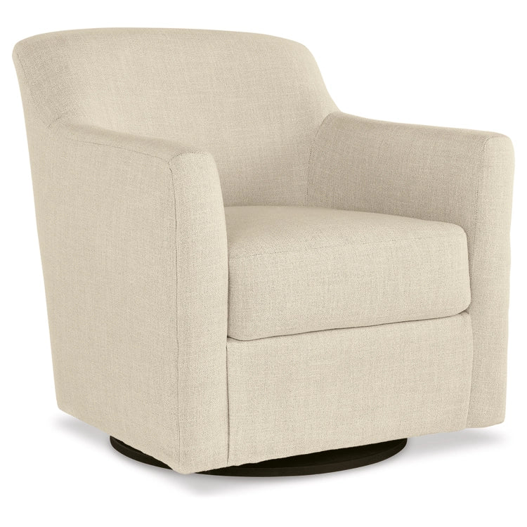 Down with uptown style. The Bradney swivel accent chair goes to town with a high-design aesthetic that's temptingly affordable. An ideal way to enhance your lounge space, this chair with a 360-degree swivel base brings casually chic style full circle.