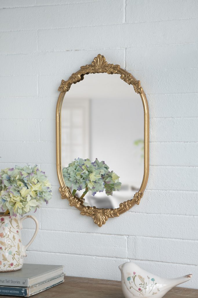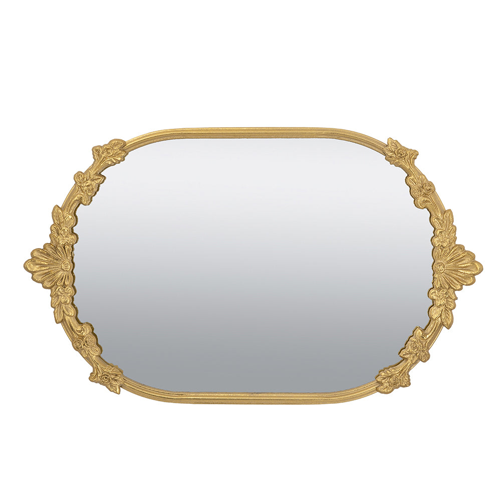 Inspired by the refined elegance of Rococo art, this tray features an ornate gold metal frame, intricate leaf-like accents, and a mirrored surface that adds a touch of sophistication. Whether used to serve drinks, showcase a centerpiece, or organize everyday essentials in style, it is sure to draw the eye anywhere in your home.