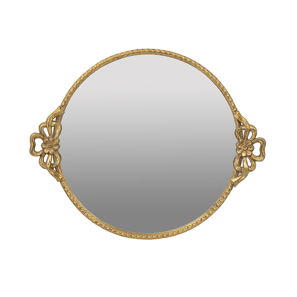 Inspired by the refined elegance of vintage decor, this tray features a round, ornate gold design, intricately sculpted handles, and a mirrored surface. Whether used to serve drinks, showcase a vibrant centerpiece, or organize essentials, this tray will capture attention from anywhere in your home.