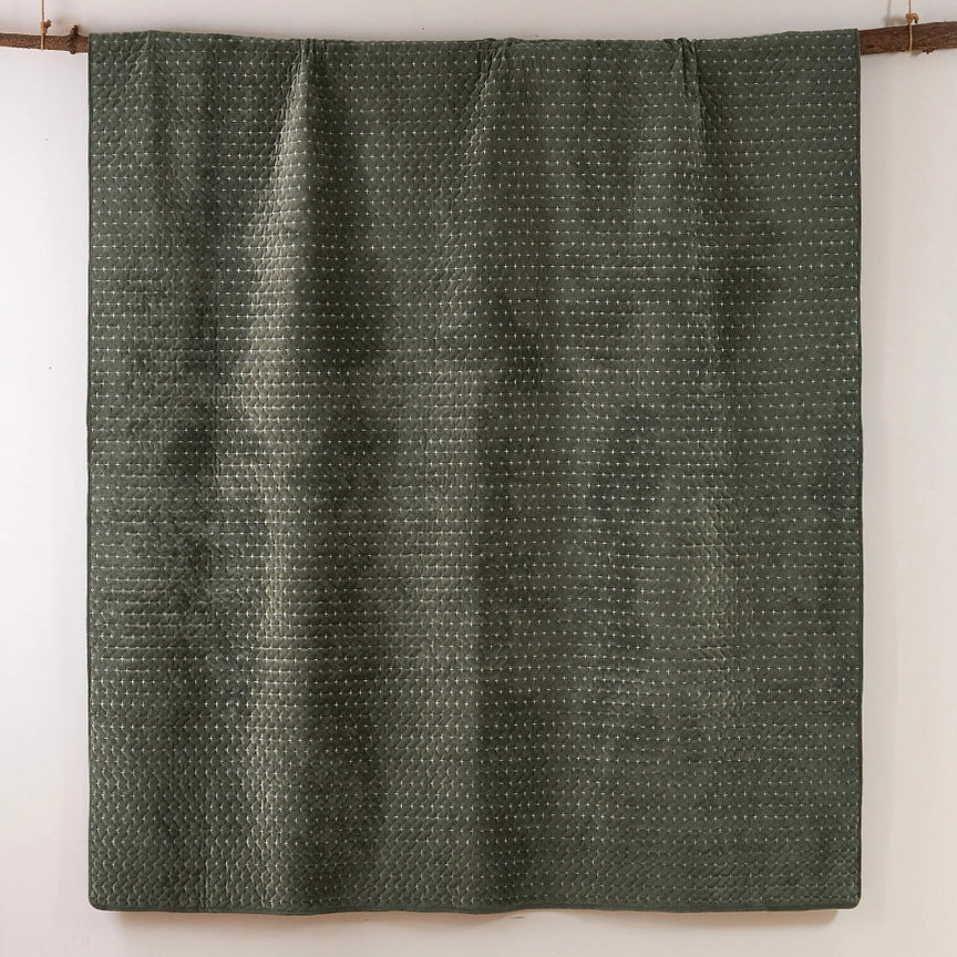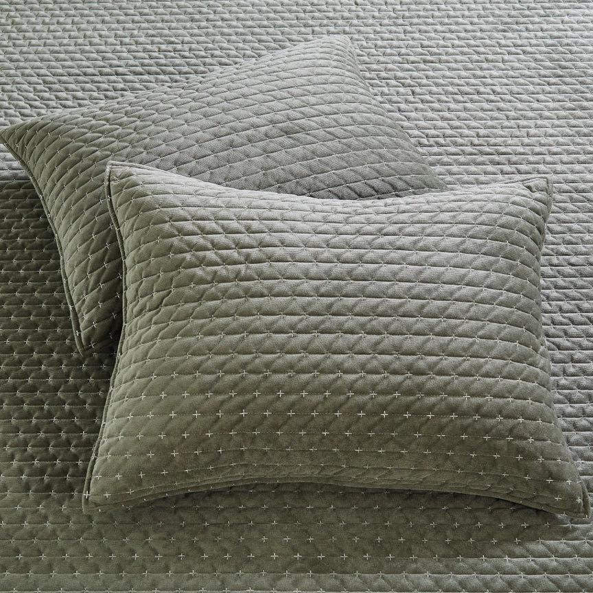 The Velvet Stitch Reversible Quilt Set is inspired by a luxurious retreat filled with rich fabrics. This design will immediately transform your bedroom. This reversible quilt features a rich velvet with white cross stitch throughout on the front, reversing to a solid on the back. The Quilt Set has a microfiber front and back, filled with a cotton-rich filler, and are machine washable. Enjoy this for years to come!